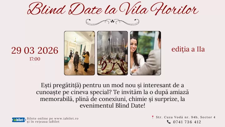 Blind Date la Vila Florilor este o seară pentru persoane singure care vor să cunoască oameni noi, într-un spațiu elegant și civilizat.