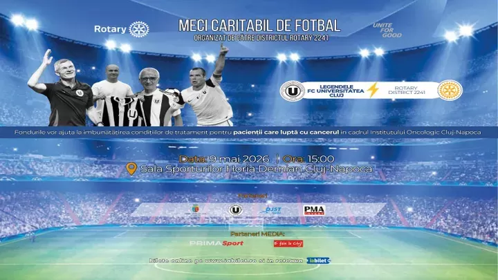 Cauza:Fondurile vor ajuta la îmbunătățirea condițiilor de tratament pentru pacienții care luptă cu cancerul în cadrul Institutului Oncologic „Prof. Dr. Ion Chiricuță” Cluj-Napoca.Fiecare bilet cumpărat înseamnă o contribuție directă la acest obiectiv.Meciul:Legendele FC Universitatea Cluj vs. Rotary District 2241