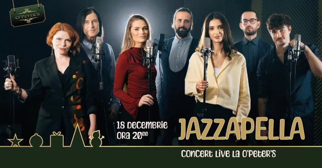 Pe 18 decembrie,Jazzappella vin în O’Peter’scu un program de Crăciun. Repertoriul va include piese celebre precum ”Jingle Bells”, ”All I Want for Christmas Is You”, sau ”White Christmas”, dar și prelucrări originale în manieră jazz ale unor colinde românești precum ”Steaua sus răsare”, sau ”Domn, Domn să-nălțăm”. Fiți pregătiți pentru o seară plină de ritm, energie și armonii vocale. Nu vor lipsi nici hituri pop-rock, precum și standarde de jazz.