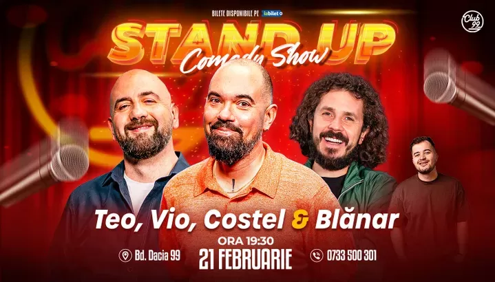 Vă așteptăm la o seară de stand-up comedy alături de Teo, Vio, Costel - Marian Blănar
